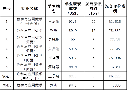 推荐优秀应届本科毕业生免试攻读硕士研究生实施办法》(江大校〔2020〕2号)等的文件精神,经个人申请,学院综合评价,院推免工作小组审定并经党政联席会议讨论通过,以下六名同学为2021级推免硕士研究生候选人,另有两名为候补人选(结合各专业名额分配,按综合成绩从高到低排序):