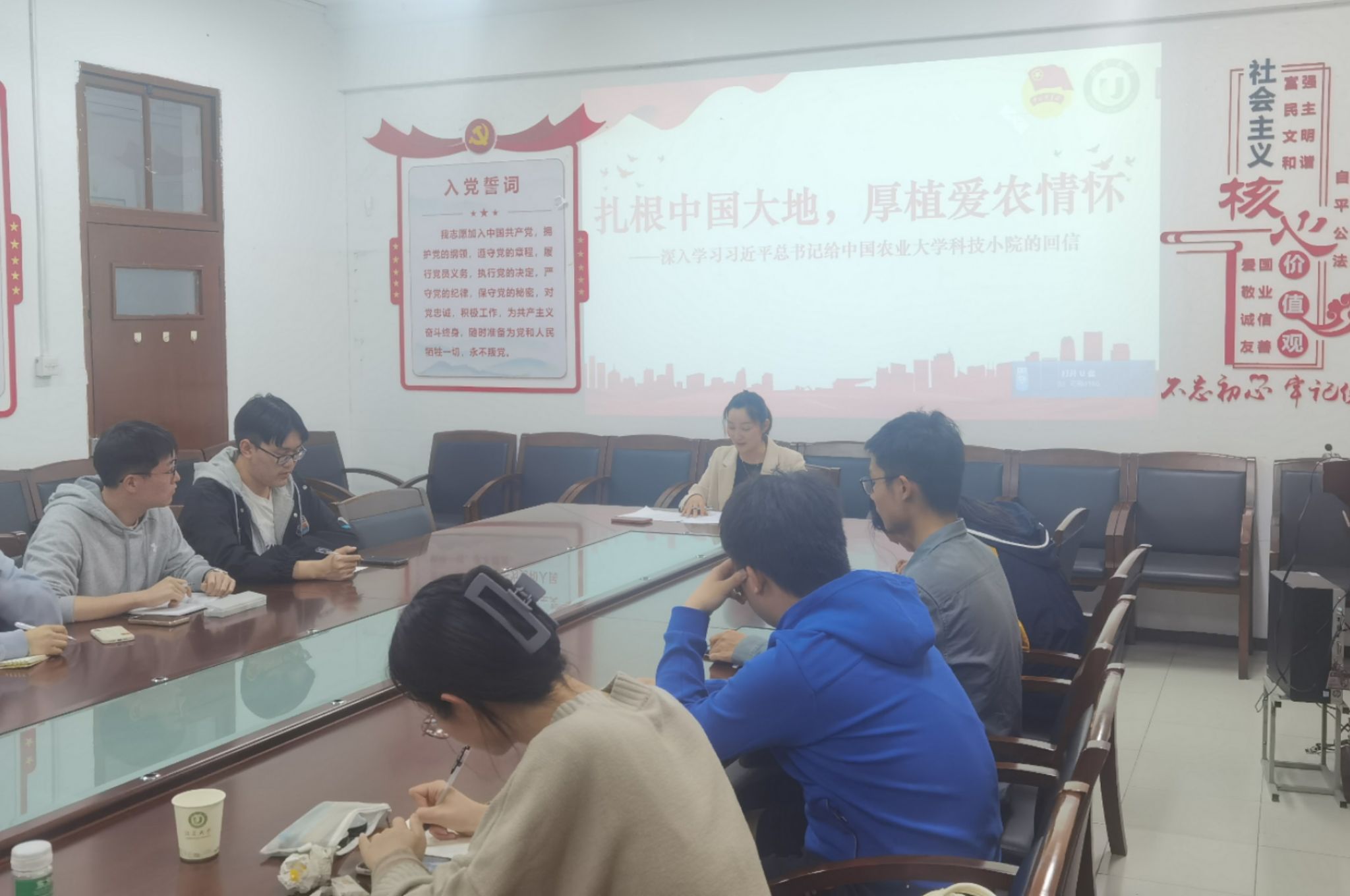在数科院206会议室组织团学干部学习习近平总书记给中国农业大学科技小院学生的回信精神。学习会由红桃视频