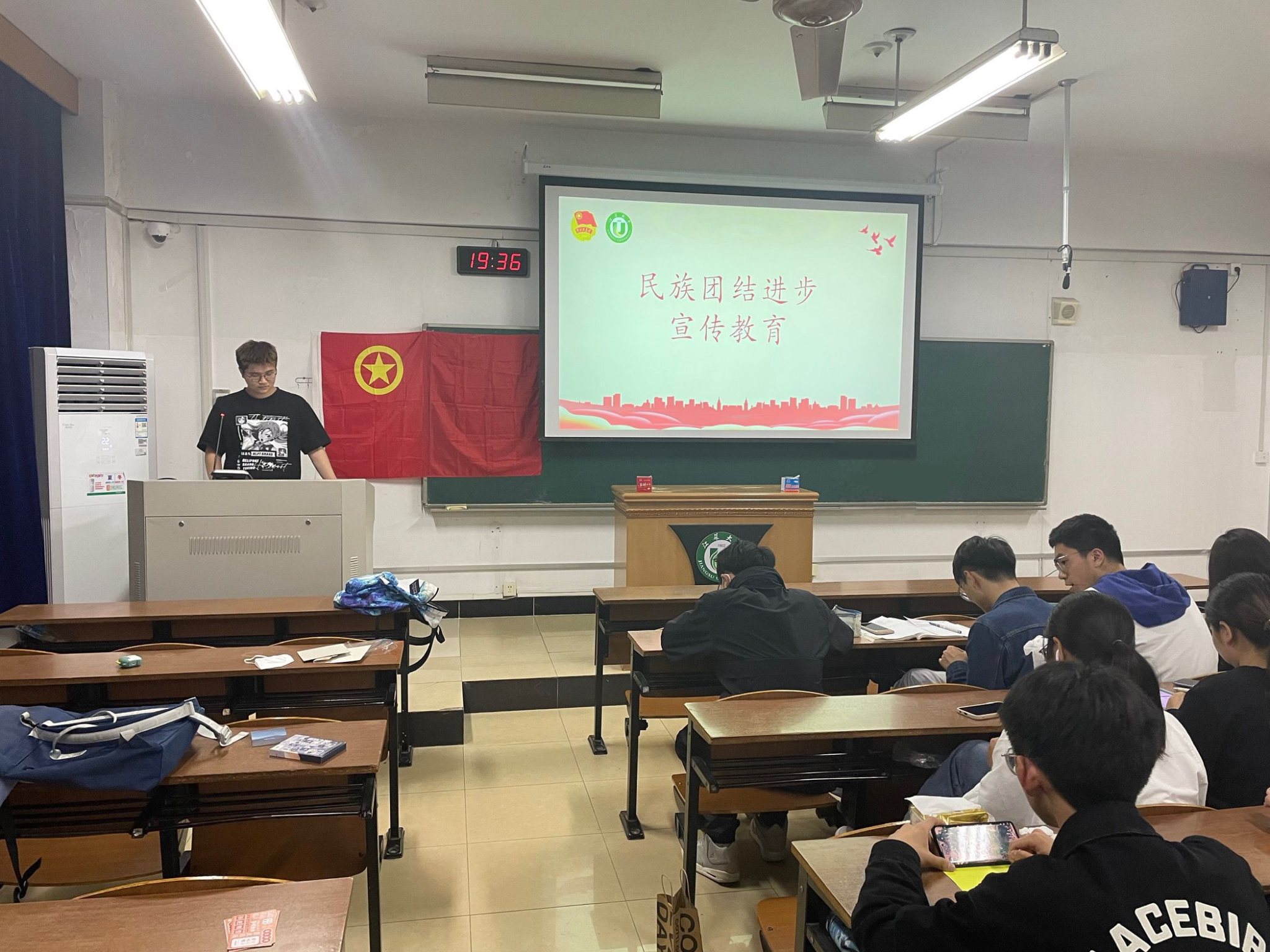 首先,汪旸带领全体同学学习党的民族理论和政策,把握习近平总书记关于加强和改进民族工作的重要思想,在学习中感受各民族团结一心、共同奋斗的重要性。随后,开展民族团结进步相关知识竞赛,加强了同学们对民族团结进步创建工作和《中华人民共和国宪法》中关于我们多民族基本国情的知识的认知与理解,深刻认识到铸牢中华民族共同体意识是新时代民族工作的主线,也是民族团结进步创建工作的鲜明主线。
