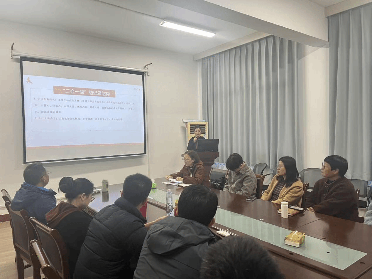 本次培训特邀学校组织部关雪飞老师、孙月娟老师担任主讲嘉宾,内容聚焦党建实务与考核导向,兼具理论深度与实践指导性。培训伊始,孙月娟老师以“2024 年度考核情况回顾与2025年度考核指标解读”为主题展开分享。她系统梳理了上一学年学院各基层党组织在年度考核中的整体表现,围绕政治建设、组织功能发挥、党员教育管理等核心维度,客观总结成效亮点,精准指出存在的短板不足,并明确了针对性改进方向。在此基础上,孙老师对2025年度党建考核指标进行全面拆解,逐一阐释新指标的设置背景、核心内涵与评价要点,帮助与会人员精准把握新时期党建工作的目标导向与实践要求,为推进党支部规范化建设、品牌化创建提供了清晰路径。