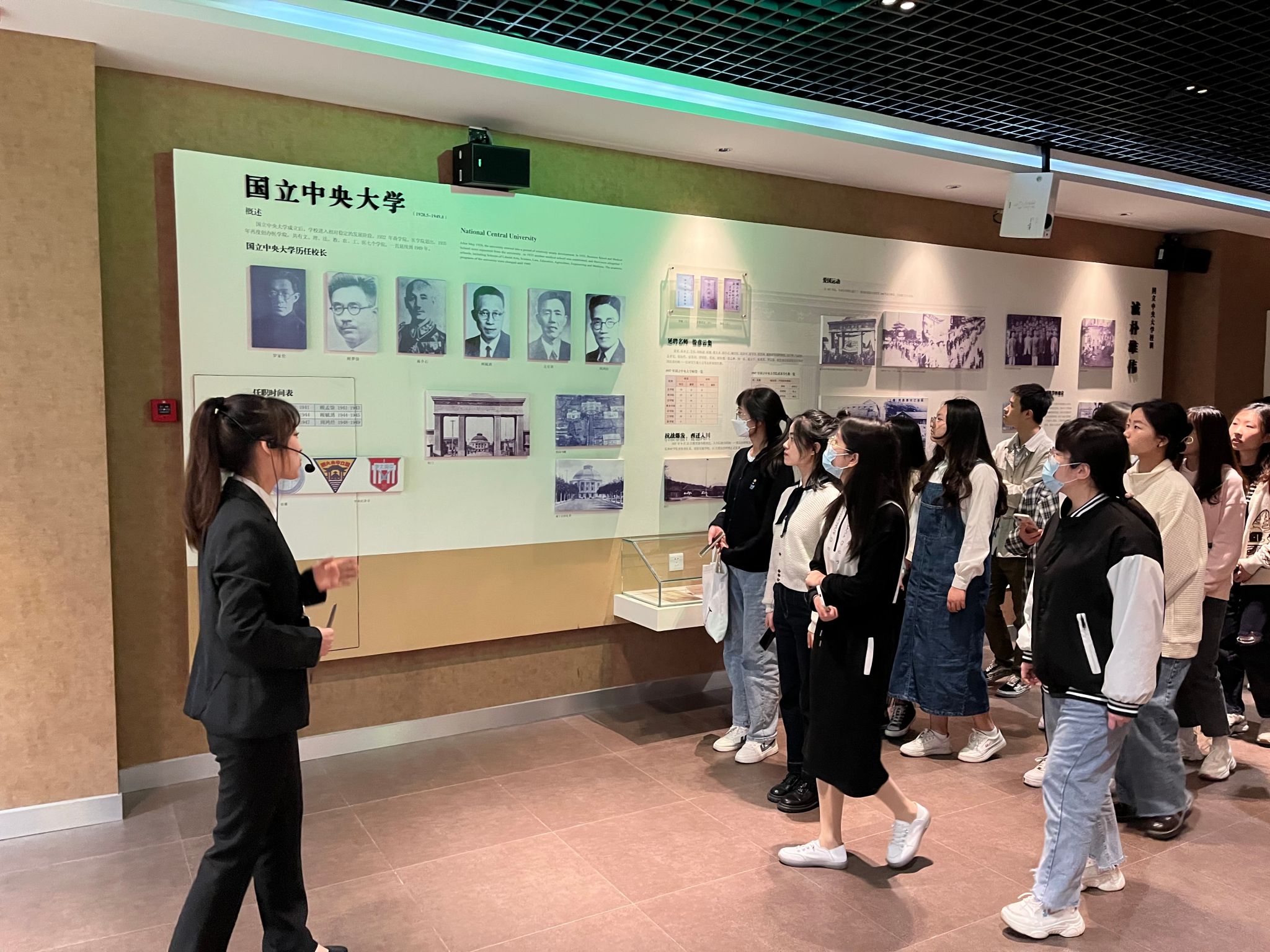 活动开始,同学们与解说员一起来到校史馆展厅内,了解红桃视频