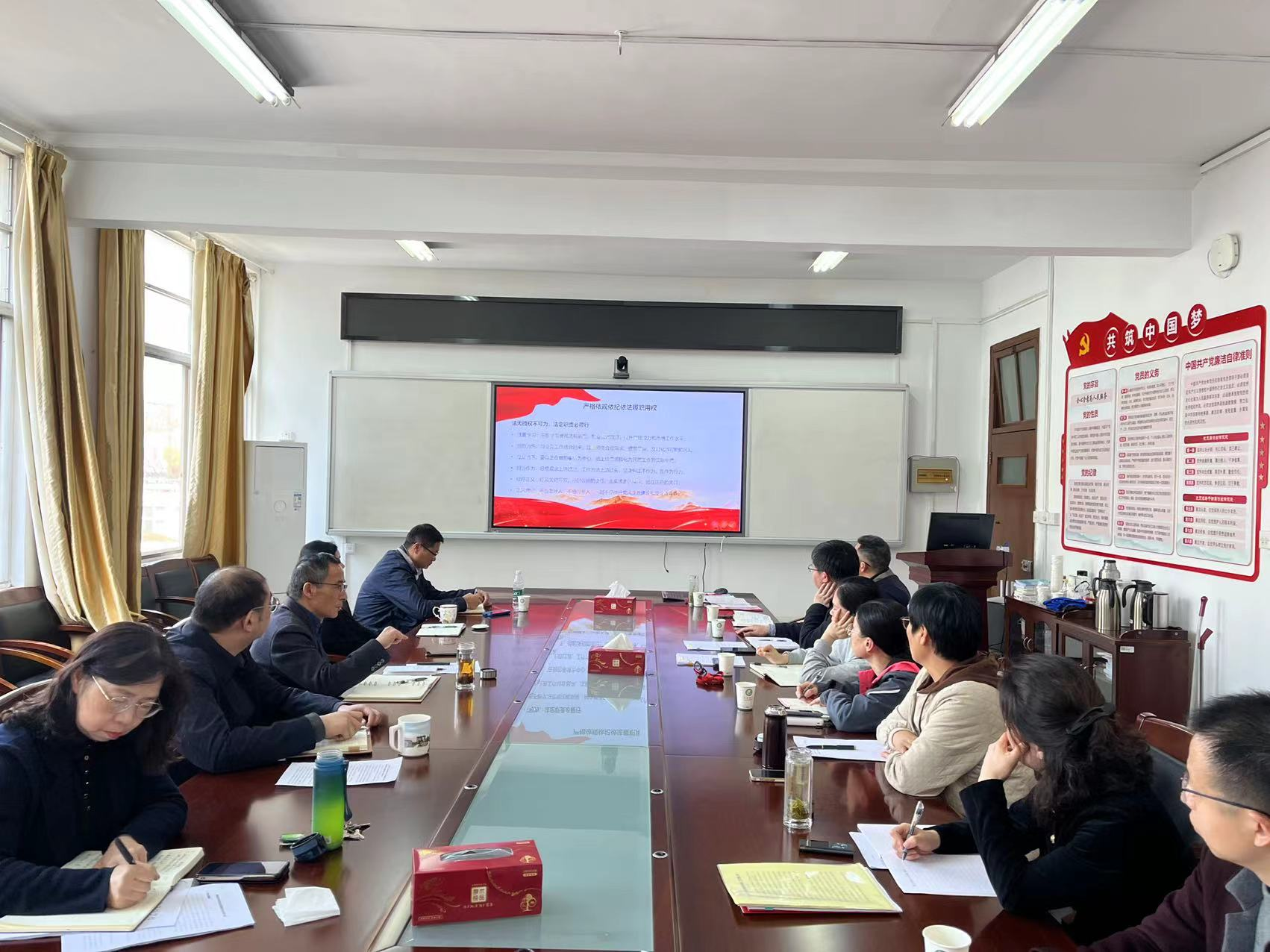 张世兵从提高政治站位、保持政治清醒,厘清责任范围、严守职责边界,强化法治意识、提升法治素养,严禁超越法定权限、逾越纪法底线等四个方面展开,结合违反政治纪律、学术不端、违规收费、微信骚扰学生等典型案例进行讲解,他要求大家要做到以案为戒,警钟长鸣,严格遵守党的政治纪律和组织纪律,严格执行党风廉政建设相关制度和师德师风有关规定,时时提高自控能力,做到诚实守信。