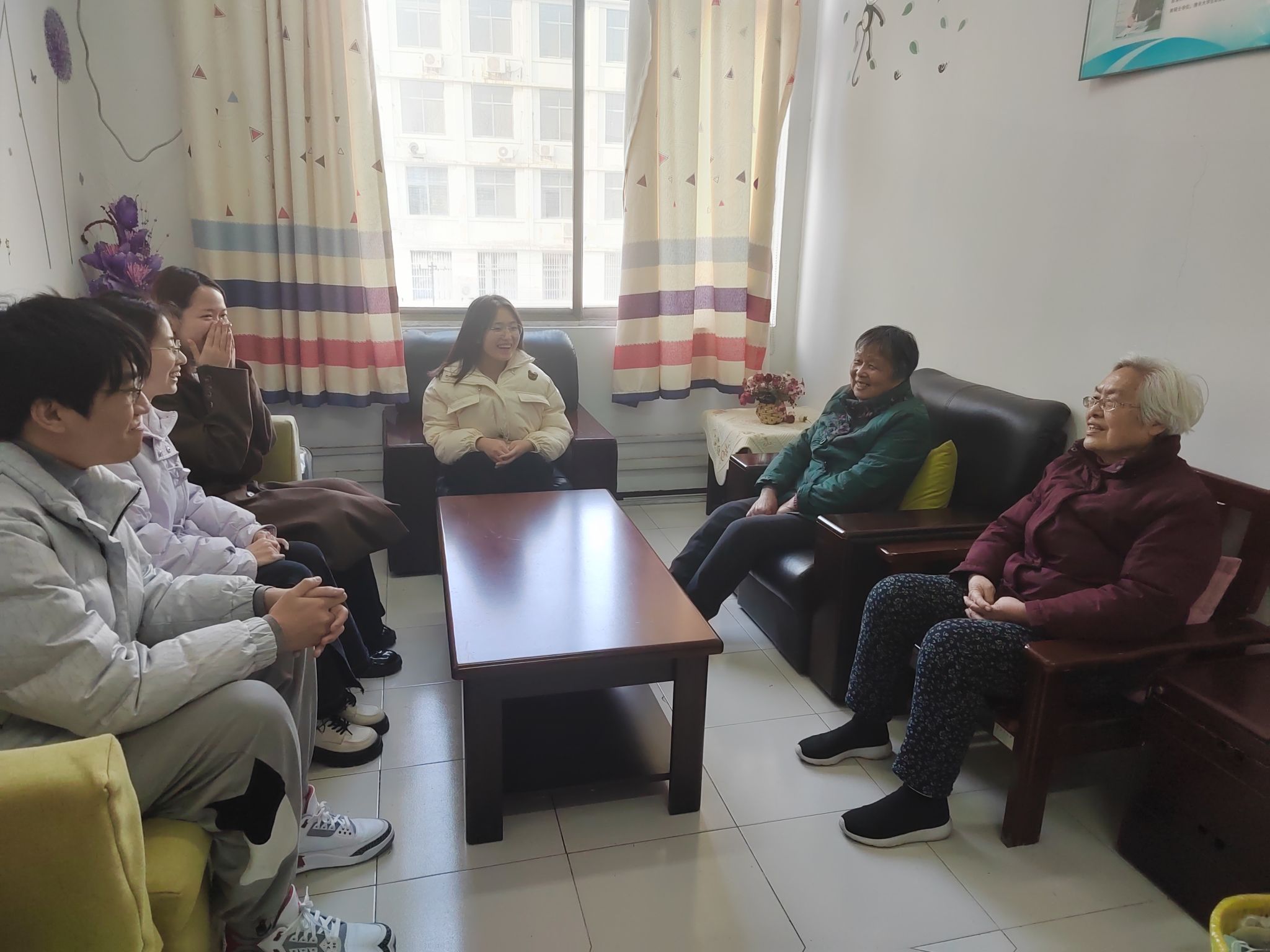 陈院长感谢钟老师退休后一直关心和支持学院青年师生工作。钟老师与学院辅导员亲切交流,互相认识。尹老师向钟老师汇报了学院学生基本情况和关爱谈心屋的建设。钟老师与学生们亲切交谈,关心学生们目前准备考试的情况,鼓励同学们相信自己,一定会发挥出好的成绩。