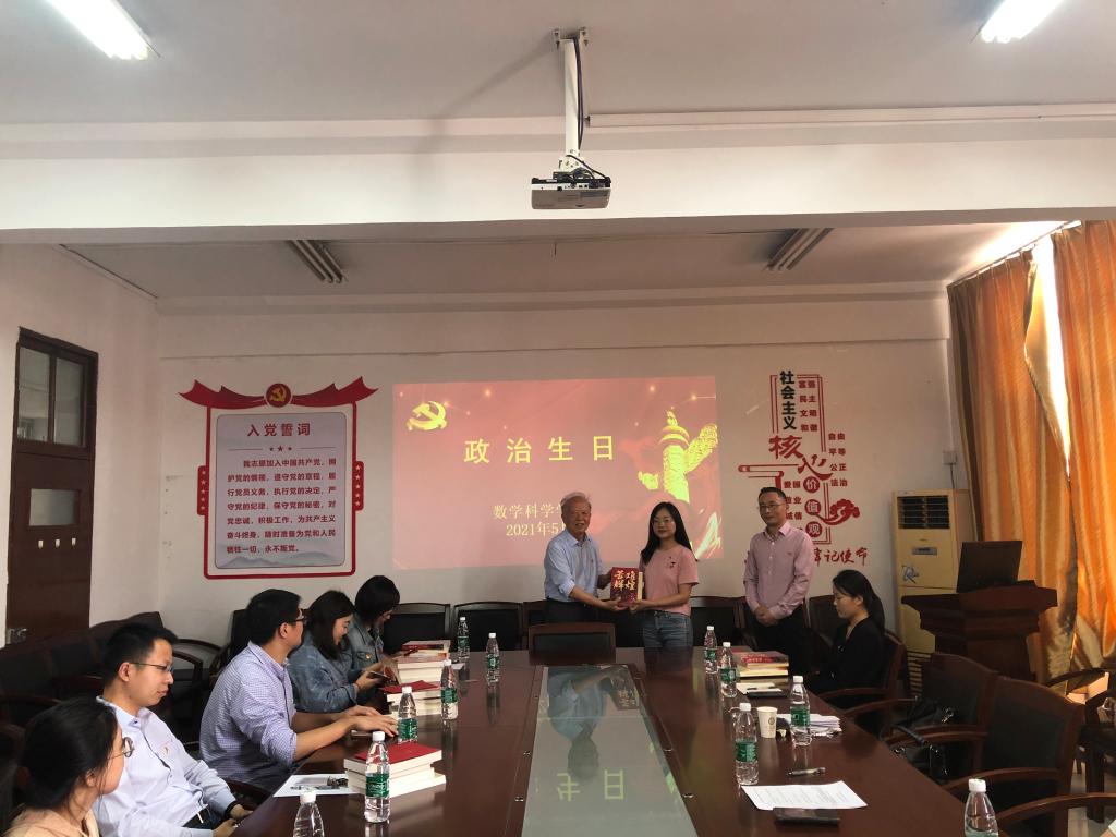 接下来,张世兵为过“政治生日”的6位党员同志赠送“政治生日贺卡”,送上政治生日祝福。张有德老师代表学院关工委赠送政治生日礼物《苦难辉煌》,并提出殷切希望,敦促党员时刻牢记党员身份。