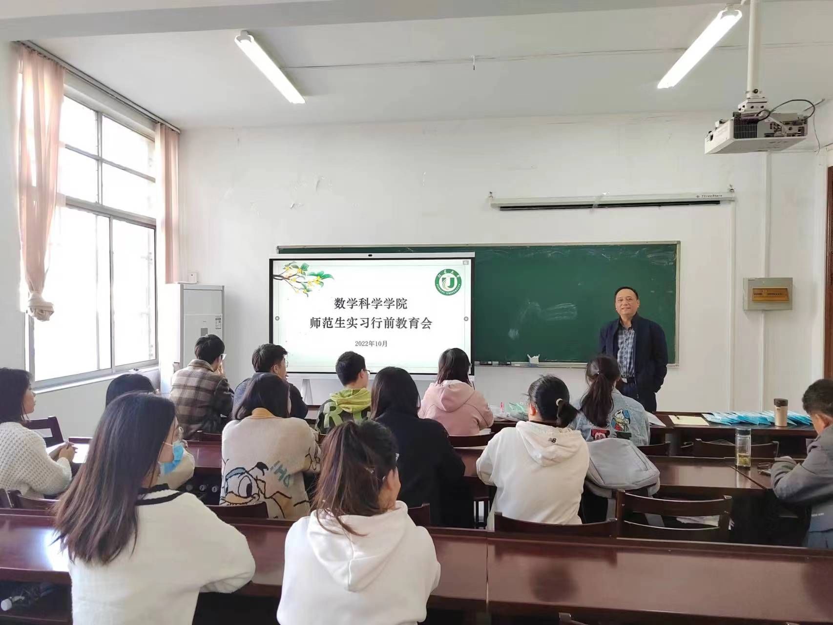 在动力楼104举办师范生实习行前教育会。会议由毕业班辅导员尹华老师主持。学院关工委冯志刚老师、系主任宋晓平老师及实习师范生代表12人参加了教育会。