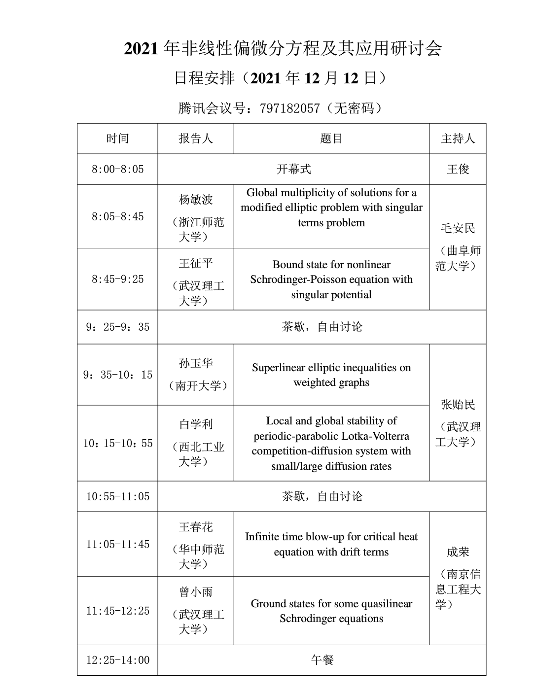 Tencent Conference App ID: 797 182 057 (No password)