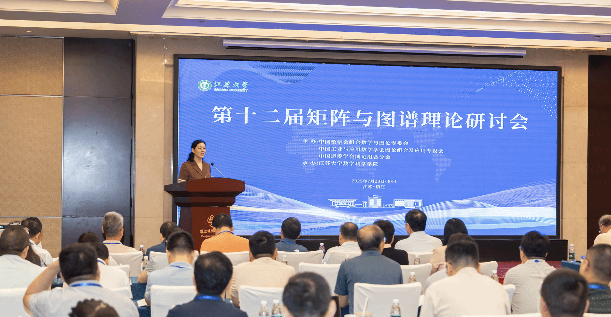 承办的“第十二届矩阵与图谱理论研讨会”在江苏镇江召开。来自清华大学、上海交通大学、复旦大学、同济大学、中国科学技术大学、西安交通大学等国内60多所高校的110余名相关领域专家、学者代表参加了此次会议。围绕矩阵论、图谱理论、超图谱理论、群与图等前沿热点课题展开深度交流。